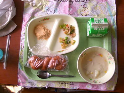 今日の給食の準備の様子です。メニューも