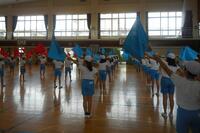旗を動かすところと止めるところのメリハリを確認しながら練習に取り組んでいます。