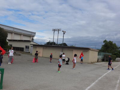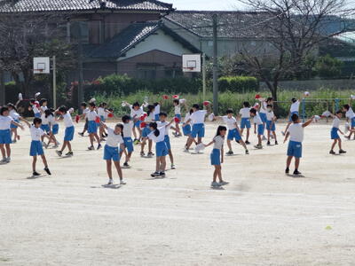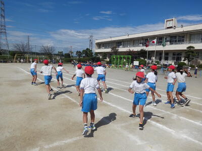 低学年のエビカニ玉入れの練習が校庭で行われました。児童は、エビカニのダンスを踊り、ノリノリで玉入れに臨んでいました。玉入れの勝敗もさることながら、児童の踊りも楽しみにしていてください。