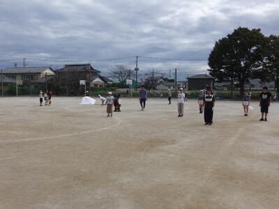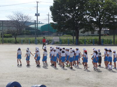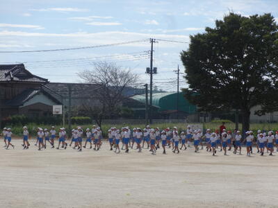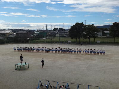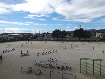 中学年は、入場の仕方を確認し、音楽に合わせた行進を練習していました。さらに大きく校庭を使っての