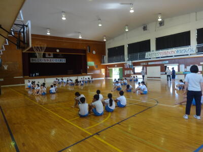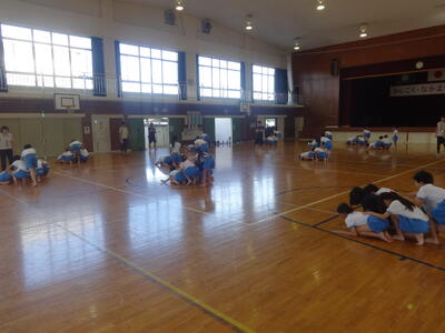 中学年のダンスの練習も体育館で行われました。リズムに乗って、体全体を使って、弾んで踊る姿が元気いっぱいでした。踊る楽しさを見ている人に伝えられる演技になってきました。楽しみです!。
