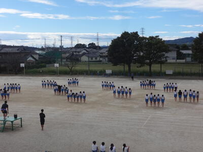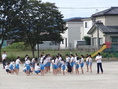 ダンスの通し練習をっていました。なかなか大勢で行進するのは難しいですね。