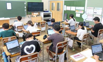 5年生は、スクールタクトを活用し、「数と計算」を問う問題の復習をしました。