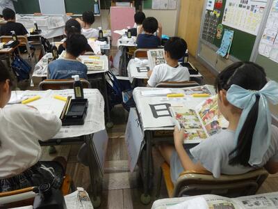 6月は読書週間の取組で、読書タイムが多く設定されていました。3年生の教室では、習字に慣れない児童が、準備の時間を少しでも短縮するために、習字の準備をした上で読書に取り組む場面が見られました。読書の世界に没入し、気持ちが整った上で、習字をすると効果がありそうですね。