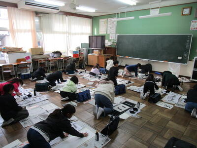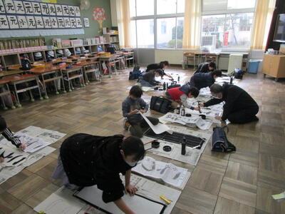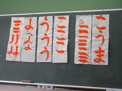 3年生初めての書き初め頑張っています! 投稿: HPadmin (15:34) 3年生が初めての書きぞめがんばっています。 書道も初めての3年生が、大きな半紙に大 きな筆を使って、紙いっぱいにひらがなを書いて います。「こうま」という時は、いざ書きぞめで書く と大変難しいということを感じながら、集中して 頑張っていました。 Tweet -