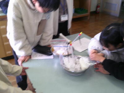 を作ったり、氷でひゃしてシャーペットができるか調べたり
